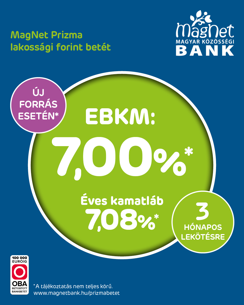 MagNet Prizma lakossági forint betét kiemelkedő kamatot biztosít 3, 6 vagy 12 hónapos lekötési időre, a Banknál új forrásnak minősülő összegre további feltételek nélkül